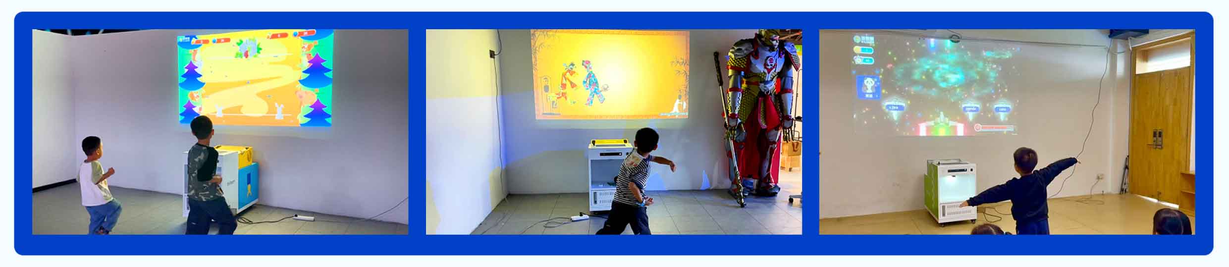 在地面投影出立体逼真的游戏画面,幼儿可在情景式、交互式的游戏中身临其境般学习各种知识。
