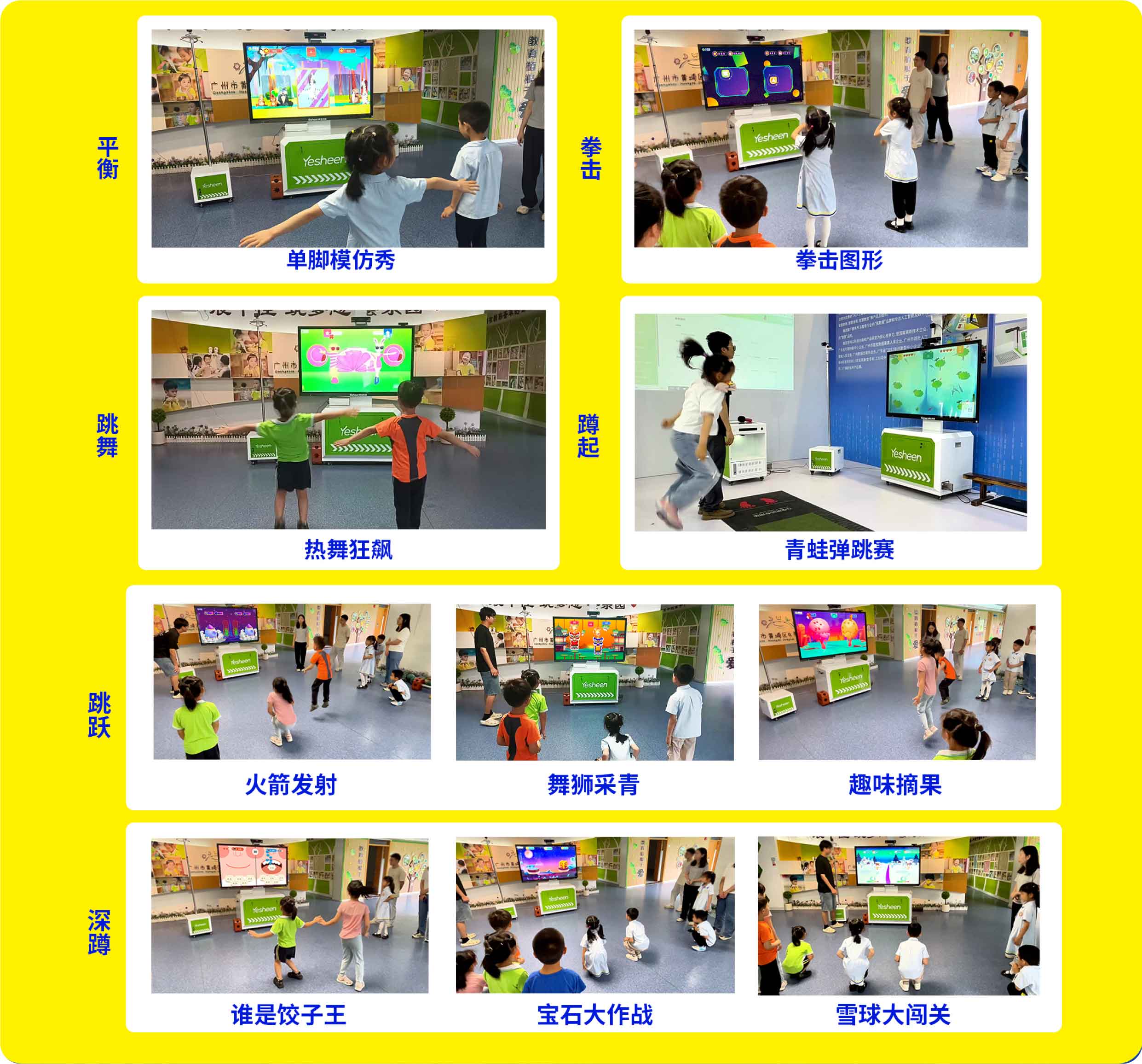 AI体测游戏通过摄像头精准捕捉幼儿的运动轨迹,大屏幕将实时显示幼儿的运动数据,如:动作规范性、运动速度、动作数量等,帮助幼儿进行更科学合理的体能锻炼,养成热爱运动的良好生活习惯。