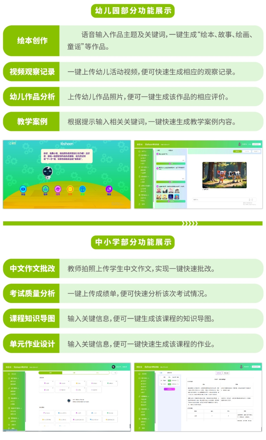 AI大模型教学软件专注为幼儿园、小学、初中、高中、高职院校等教育行业提供AI大模型服务,包括AI教学、AI创作、AI教研、AI管理等,用AI大模型技术赋能教育行业,让教育工作更高效。